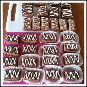 In reteta originala scrie sa lasi din crema pt aveline, insa mie nu mi-a prea ajuns crema nici sa intind deasupra. Daca stiam ca o sa pun glazura nu mai puneam crema deasupra si o tineam pt ornat . Dar oricum au iesit niste bucati frumoase si mai ales gustoase.