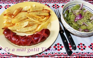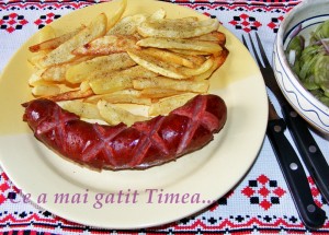 Dar pentru ca este un blog culinar am sa va povestesc cu lux de amanunte cum se fac cartofii prajiti cu carnati :))