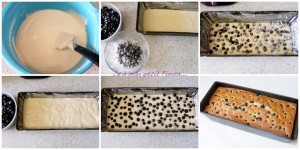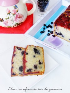- Turnam jumatate din compozitia pentru blat peste care punem cam 2 linguri de afine date prin faina. Peste afine turnam restul de compozitie si deasupra presaram alte 2 linguri de afine (pe acestea nu le-am mai dat prin faina)
