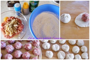 Punem in fiecare cerc cate o bila de carne si strangem la mijloc apasand usor.