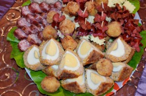 Sotul meu radea de ele si sa va zic de ce. Stiti ca se zice ca scotienii sunt zgarciti, asa ca el a zis ca acest aperitiv a fost facut ca sa induca in eroare oamenii, adica crezi ca e o bucata mare de carne , dar cand colo e doar un strat subtire restul e ou :))
