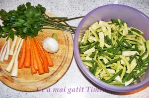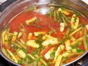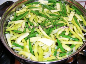 Cand fierbe apa punem legumele taiate si fasolea si lasam la fiert la foc mic.