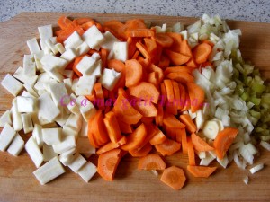 Legumele taiate le punem in apa clocotita si lasam sa fiarba la foc mic.