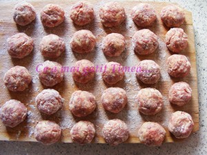 Amestecam bine toate ingredientele, apoi cu o lingurita luam din compozitie o punem in faina si cu mana formam bilute.