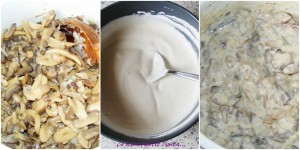 Turnam smantana peste ciuperci si amestecam sa nu se prinda de fundul vasului.