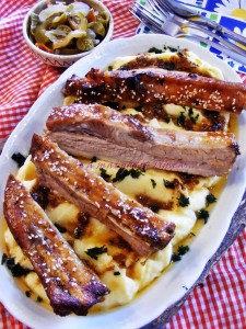 O mancare pe care o am in vedere de foarte mult timp si cum am vrut sa fie o reusita, am luat o reteta de la draga mea prietena Claudia Baban, o specialista in coaste asa cum o stie toata lumea pe site-ul Bucataras :).  Am intervenit cu  mici, mici modificari, dar esentialul a ramas si am facut niste coaste perfecte, iar sotul meu a zis ca a fost cea mai buna mancare de anul acesta :)) . E  bine de stiut ca el adora coastele si carnea de porc in general 🙂