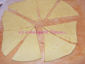 Capetele le indoim usor pentru a obtine forma de corn. Lasam la dospit inca 20 minute.