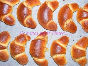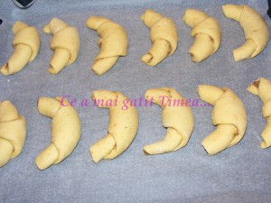 Ungem apoi cornurile cu galbenusul de ou si dam la cuptorul incins la 175 grade timp de 20 min.