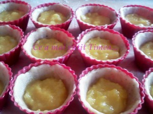 Le-am facut in acelasi timp cu tarta cu mar si portocala, din aceleasi ingrediente, dar am sa reproduc si aici reteta pentru aceste mini prajiturele gustoase.