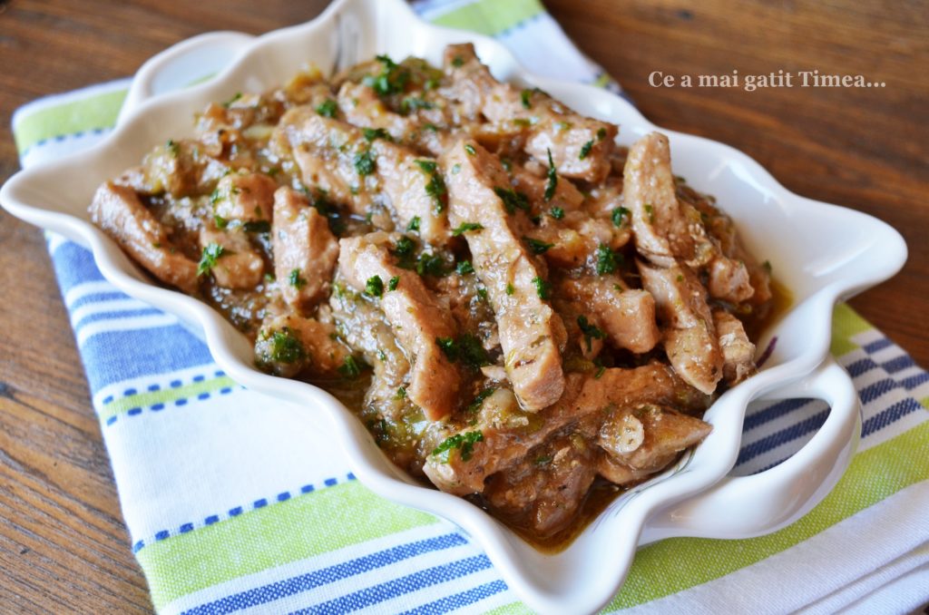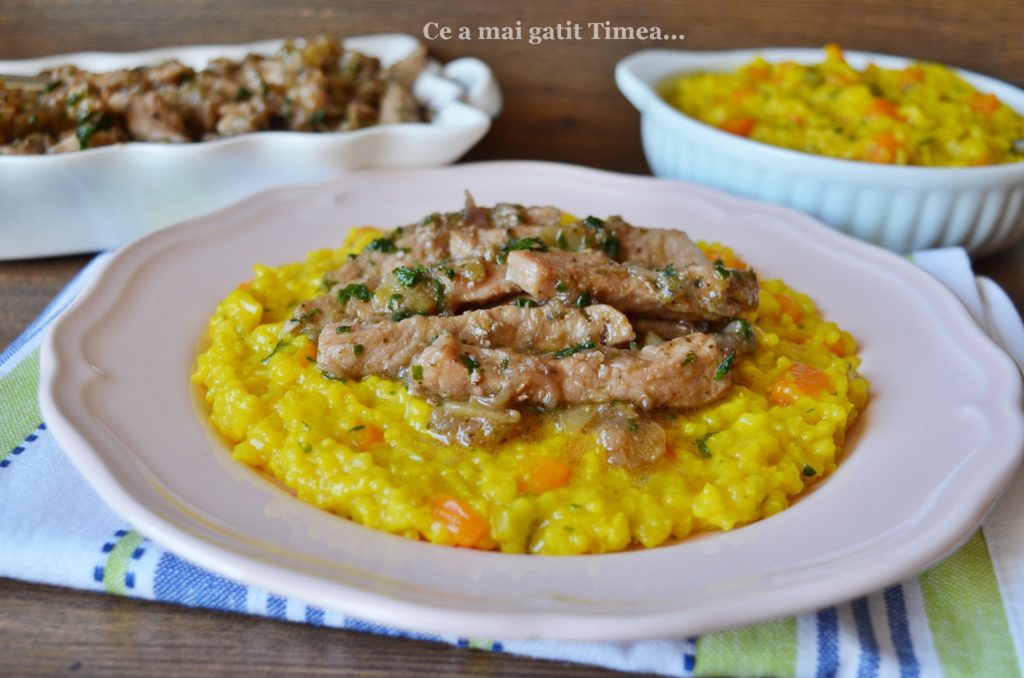 - Putem servi cotletul de porc in sos de ceapa cu pilaf de orez cu curcuma sau cu o garnitura de legume.
