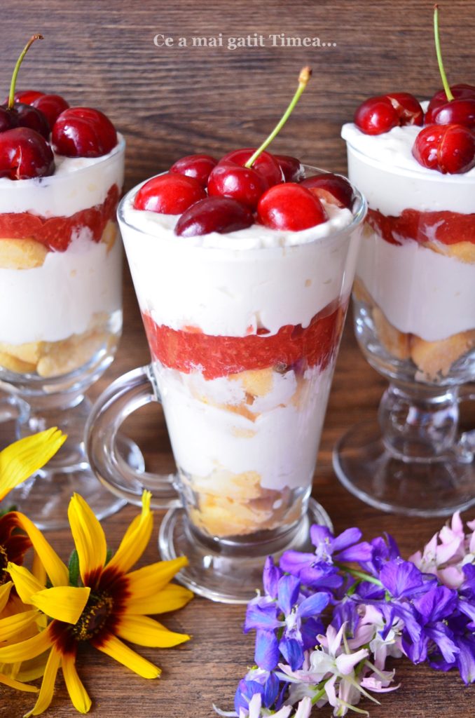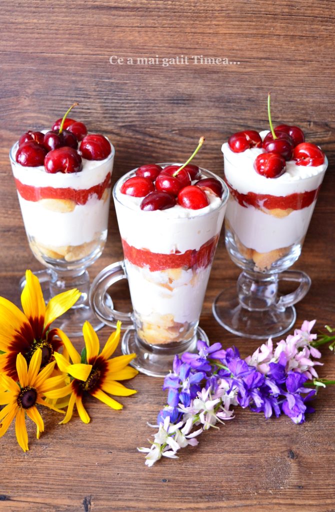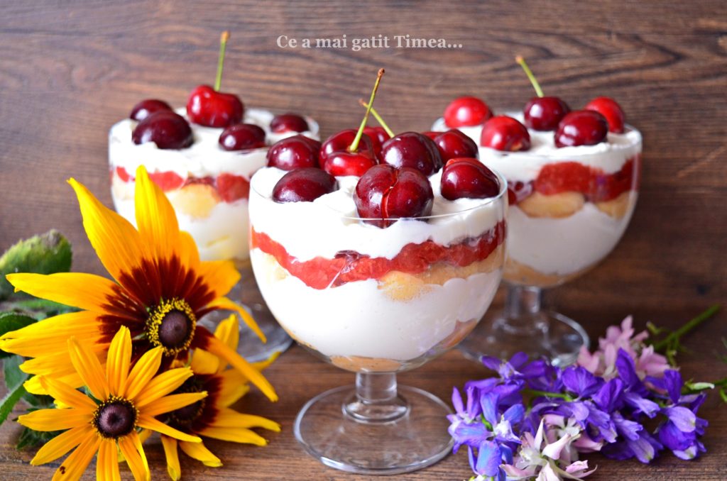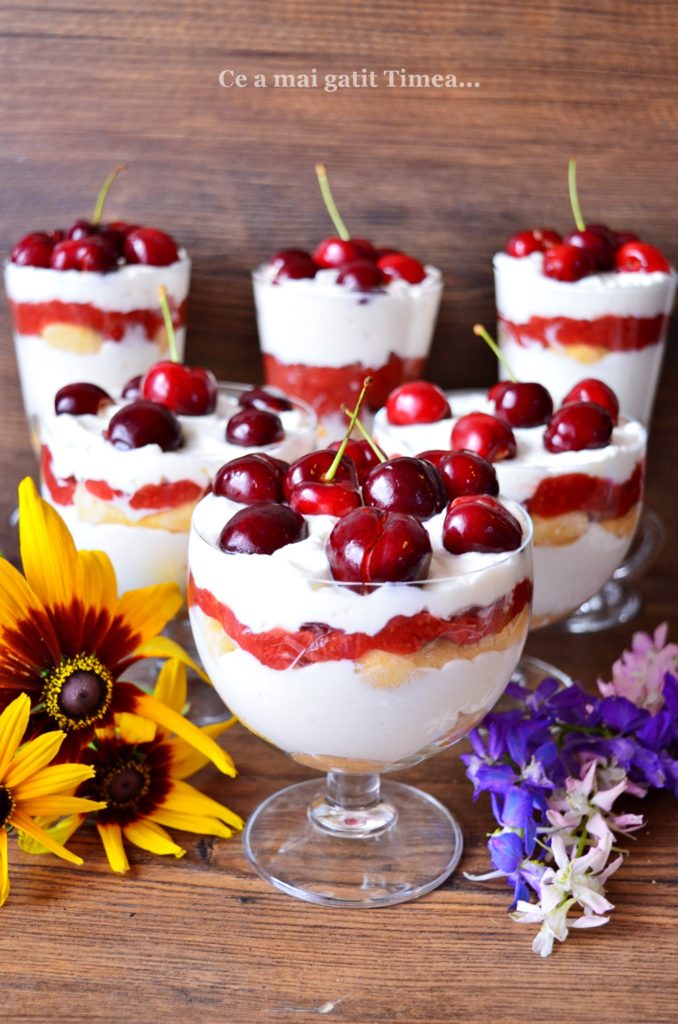 - Cantitatile sunt aproximative pentru ca depinde de cupele folosite si de cantitatile de frisca si fructe dorite pentru acest desert. Se poate jongla dupa gustul fiecaruia. Din cantitatile mentionate, eu am facut 3 cupe si 3 pahare.