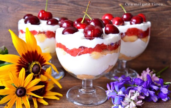 Cu atatea fructe de vara in jur, o sa mai urmeze o serie de deserturi usoare asa cum v-am obisnuit deja. Deserturile la pahar sunt simple, fresh si delicioase si sunt sigura ca oricine poate sa le faca fara a avea nevoie de nici o experienta :). Va recomand cu drag acest Desert la pahar cu jeleu de capsuni si cirese