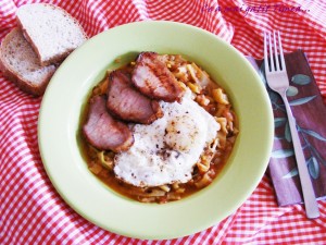 Pt cei care postesc se poate servi asa simplu. Sau se poate servi cu ochiuri, muschi file afumat cum am facut eu, sau cu carnati, bacon prajit..variante exista 🙂