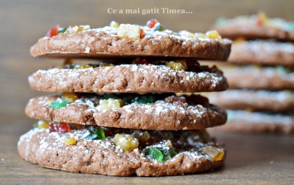Mod de preparare Fursecuri mari cu cacao si fructe confiate