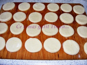 Intindem aluatul si decupam forme rotunde si le lasam la dospit inca aprox 20 minute.