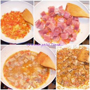 Spre final adaugam pasta de gogosari cu rosii si oregano si cimbru tocat marunt si mai lasam pe foc aprox 5 minute.