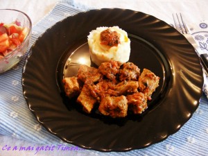 Daca mai e nevoie mai adaugam o cana de apa si lasam la fiert pana este fiarta carnea.
