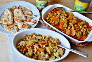 - Curatam si spalam legumele iar conservele le scurgem de apa (nautul il spalam intr-o sita).