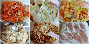 - Eu de aici am impartit legumele in doua pentru ca eu nu mananc ciuperci iar sotul nu a vrut naut :), dar voi le puteti pune impreuna toate daca va plac.