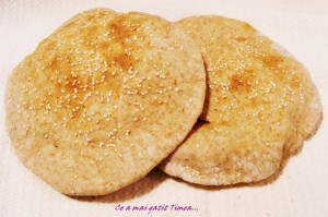 Ungem suprafata fiecarei lipii cu putin ulei sau ulei de masline si presaram deasupra seminte de susan.