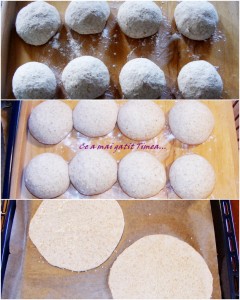 Intindem apoi fiecare bila pe masa de lucru tapetata cu faina si folosind sucitorul.