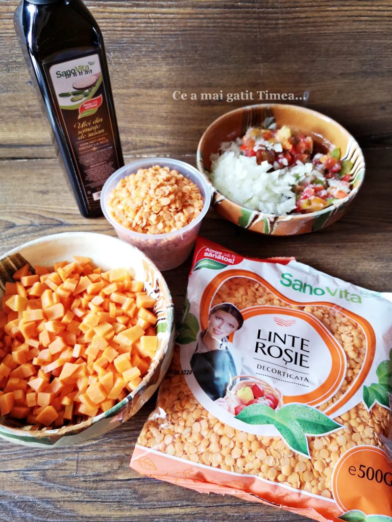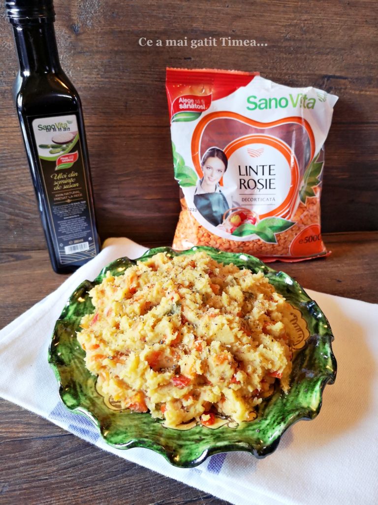 Eu am inceput cu o reteta simpla, pentru ca am vrut sa testez lintea rosie de la Sano Vita si pentru ca am vrut o mancare usoara. Va prezint si voua aceasta reteta si sper ca o sa incercati si voi.