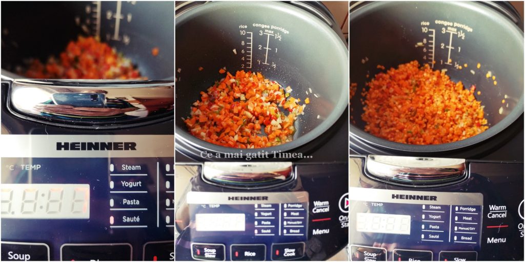 - Inchidem capacul si lasam pe programul Saute pana se opreste. Daca sunteti pe langa aparat cand se opreste, o sa auziti un sunet care va avertizeaza ca programul s-a terminat, dar daca nu sunteti prin zona, oricum el intra automat pe functia: pastreaza cald (keep warm).