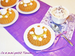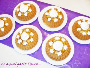 Tartele le rasturnam fiecare pe cate o farfurioara si le umplem cu aceasta umplutura.