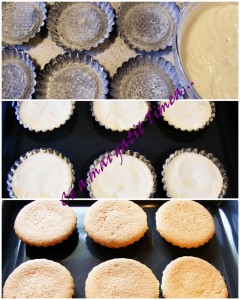 Umplem formele in mod egal cu compozitia de mai sus si le asezam intr-o tava pe care o dam la cuptorul preincalzit la 175 de grade timp de aprox 20 min.