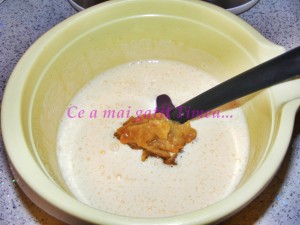 La final adaugam faina amestecata cu praful de copt, amestecand usor.
