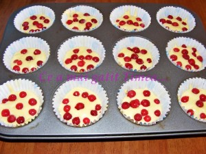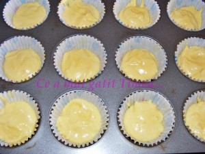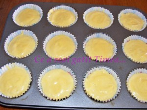 Asezam cosuletele de hartie in tava speciala de briose si le umplem de jumatate.