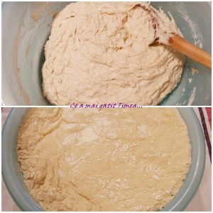 Cu o lingura de lemn amestecam faina cu drojdia si cu restul de apa calduta , adaugata treptat. Nu necesita framantare, doar amestecam cu lingura de lemn pana se incorporeaza toata faina.