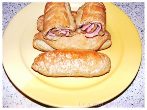 ..si mi-a ramas si putin aluat din care am facut painici/baghete cu sunca si usturoi si unele cu sunca si cascaval