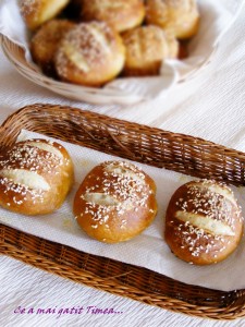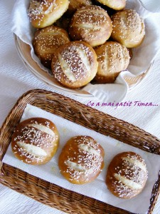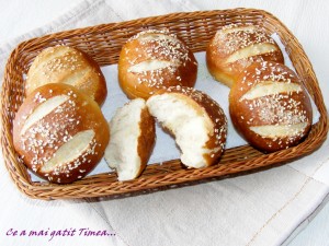 Aceste Painici Laugenbrotle-am vazut la Ancuta si Laura Adamache. Imi tot trageau cu ochiul de ceva vreme si in sfarsit le-a venit si lor randul. Sunt minunate atat ca gust cat si aspect, adevarate painici de pus in vitrina unei brutarii :). Tare incantata am fost de ele si cu siguranta am sa mai fac in curand.