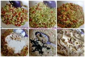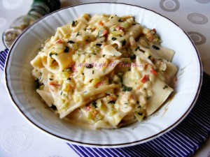 Sunt sigura ca va plac si voua pastele si daca doriti ceva mai lejer si fara carne va recomand aceasta reteta cu smantana vegetala, legume si vin. E delicioasa si chiar si cei care pretind ca nu mananca dovlecel (spre ex. sotul meu) , va zic eu ca o sa ii convingeti cu aceasta mancare :).