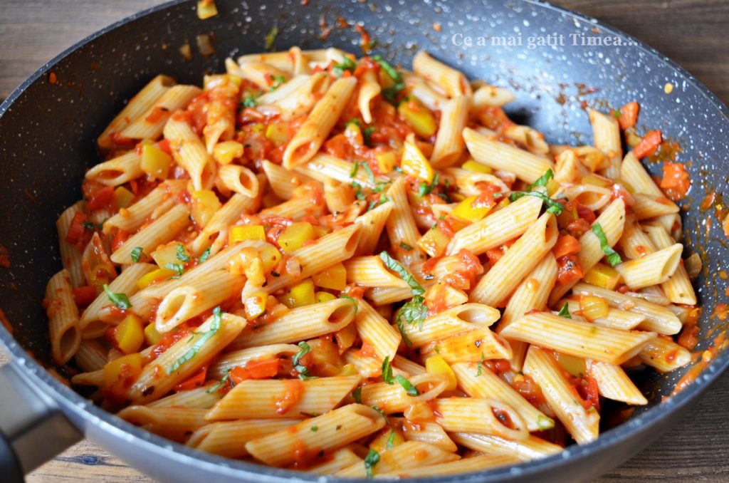 - Amestecam pastele cu sosul de legume.