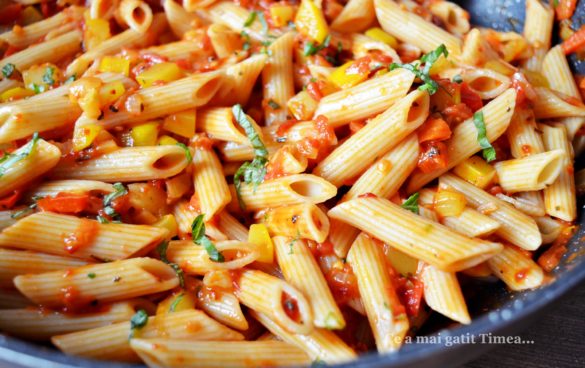 Avand atatea bunatati din gradina parintilor saptamana aceasta am gatit foarte sanatos as zice eu :). Dupa o tocanita numai de legume am trecut la o alta mancare usoara cu legume doar ca aici am folosit si paste integrale. Paste integrale cu sos de legume este o reteta usor de facut si chiar gustoasa.