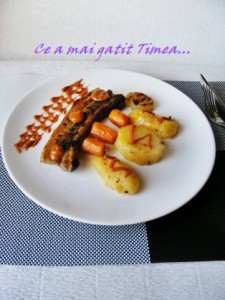 Dupa 30 min indepartam folia de Al si lasam sa se rumeneasca carnea intorcand de pe o parte pe alta dupa 15 min.