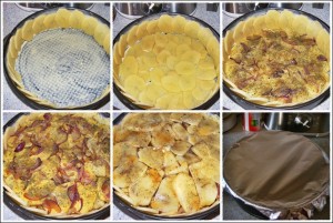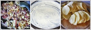 – punem apoi urmatorul rand de cartofi, apoi ceapa, ou, condimente …si tot asa pana ajungem sus