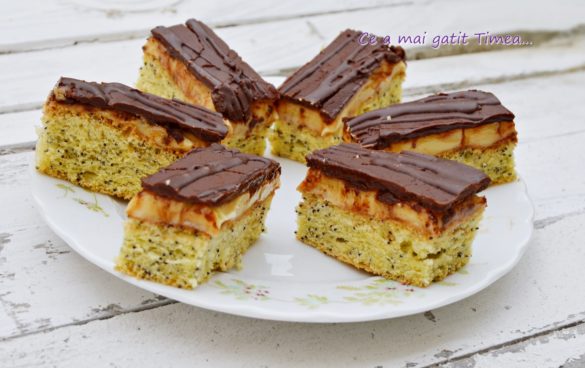 Prajitura cu mac si crema de vanilie este o prajitura cu un blat simplu in care am pus un pic de mac si cum spune si titlul, cu o crema de vanilie fina si delicioasa peste care am adaugat o glazura de ciocolata.