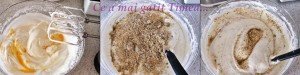 – 4 oua, 8 linguri zahar, 6 linguri faina, 6 linguri nuca, 4 ling. apa, 1/2 plic praf de copt, un varf de sare