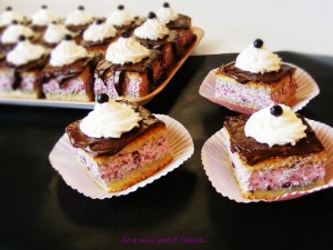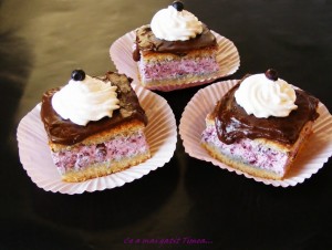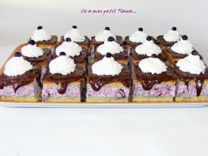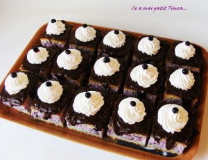 Dam prajitura la frigider o ora dupa care scoatem si o portionam (eu am taiat 24 de cuburi).