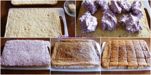 Blat: Mixam albusurile spuma cu un varf de sare. Cand albusurile sunt tari, adaugam zaharul si mai mixam cateva minute. Apoi adaugam treptat mixand dupa fiecare: galbenusurile, laptele si uleiul. La final incorporam faina amestecata cu praful de copt.