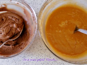 Blatul il taiem in trei (daca vreti blat mai gros, faceti doua blaturi sau mariti cantitatile) . Siropul pus deoparte il lungim cu apa si il folosim la insiropatul fiecarei foi de blat. Asadar asezam prima foaia, o insiropam si o ungem cu crema de ciocolata. Asezam a doua foaie pe care la fel o insiropam usor si o ungem cu crema caramel. Asezam ultima foaie si o insiropam usor.