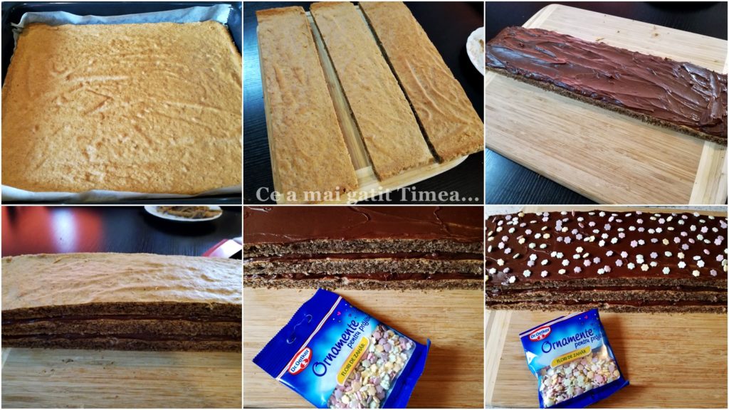 - Ungem cele trei fasii cu crema de ciocolata si la suprapunem.
