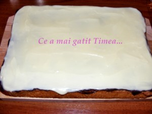 Scoatem apoi din frigider si turnam crema de ciocolata alba si nivelam frumos.