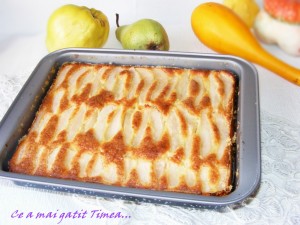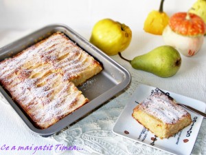 O prajitura de toamna cu fructe aromate cu o textura umeda si placuta. Usoara, economa si perfecta pentru o dupa-masa friguroasa de toamna.