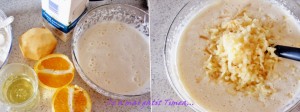 Mixam ouale intregi cu un varf de sare pana se deschid la culoare. Adaugam zaharul si mixam aprox 4-5 minute. Urmeaza uleiul, sucul de portocala cu pulpa si laptele si mixam dupa fiecare. Incorporam apoi faina, amestecata cu praful de copt, folosind o spatula. La final adaugam gutuia curatata de coaja si data prin razatoarea mare.