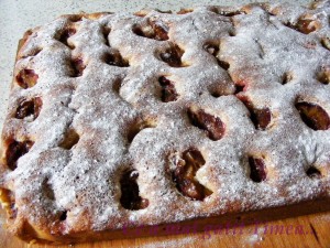 Cioc, cioc, cioc… am in mina un borcanel de dulceata, barbetica la git ca sa nu ma murdaresc, si… si vreau doua feliute de prajitura cu prune… Am si eu vreo citeva negre, dar sint inca in coèpac si nu ma indur sa le bag in praji… Delicioasa si frumoasa… Pupici !!!