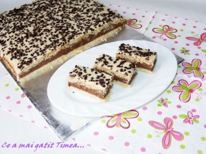 Prajitura aceasta care imi poarta si numele (da ma cheama si Kati printre altele 🙂 ), este una din preferatele mele. Am crescut cu aceasta prajitura care nu lipsea de la nici o masa festiva. Desi varianta cea originala si pe care o face si mama mea e cu spuma de albus deasupra, eu am incercat o varianta cu ciocolata alba care a iesit la fel de gustoasa. Voi faceti cum stiti mai bine 🙂